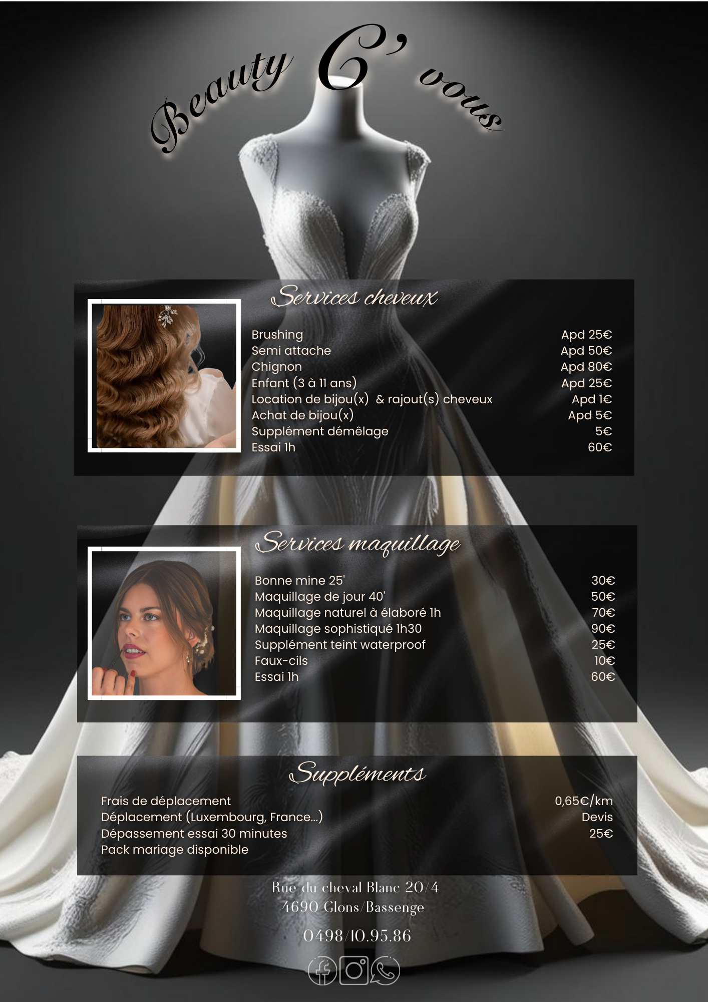 Que ce soit pour un service unique ou plusieurs prestations combinées, l’objectif reste le même : vous sublimer en respectant votre personnalité et votre style, pour un moment agréable et en toute confiance.